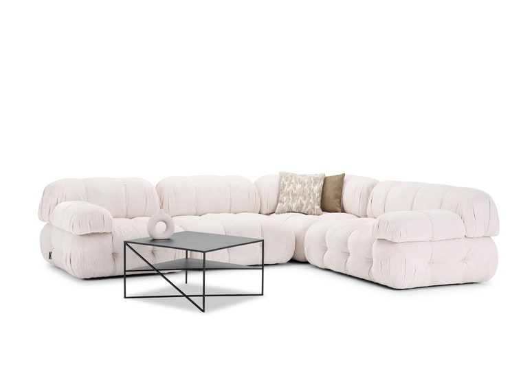 RAVELLO to kolejny narożnik modułowy, który stanowi istne wnętrzarskie arcydzieło. Każda jego część zauracza wyjątkową formą, a jego pękata kompozycja sprawia, że doskonale wpisze się on w styl glamour lub nowoczesny.