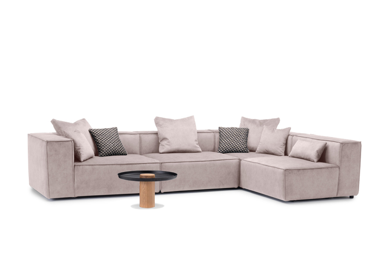 VENTO wkomponuje się w każdą piękną nowoczesną przestrzeń. To nasza kolejna propozycja narożnika modułowego. Jego pękate siedziska urozmaicić możesz poprzez stylowe drewniane moduły pełniące funkcję stolików kawowych.